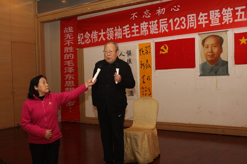 会议由马列毛联谊会负责人马青柯主持,张勤德、顾金忠、巩献田、范景刚、张全景、丁朝增、李宗信等同志分别发表了讲话,大家高度赞扬了毛主席的丰功伟绩,高度赞颂了伟大正确的毛泽东思想。