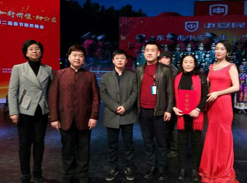 演出前嘉宾孟凡贵、李然、许琳与王进江、邢军在一起合影。