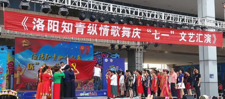 洛阳分会组织大型歌舞庆祝党的生日,知青党员们重温入党誓词。