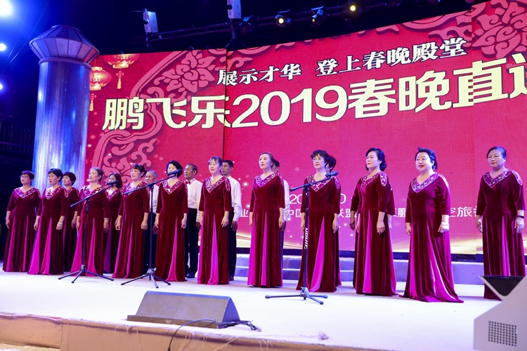上午九点,鹏飞乐2019年春晚直通车总策划贾凤良宣布海选正式开始,《鼓舞飞翎》、《梦回敦煌》、《古丝绸之路》、《共圆中国梦》、《我爱你中国》、《一带一路一支歌》、《女儿情》、《浪漫夕阳》等65个节目依次登台。