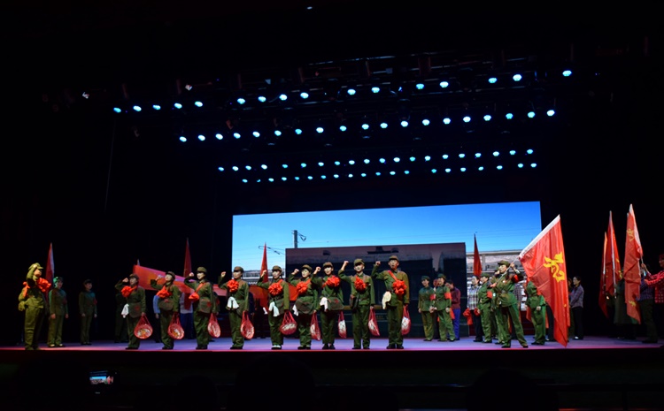 第一幕《激情岁月》,大型开场情景舞蹈《我们是共产主义接班人》一出演,就牢牢吸引了全场观众的眼球。那富有朝气、热情奔放的旋律,伴随着姐妹们迷人的笑脸和优美欢快的舞姿,充分抒发着知青人对祖国、对党的无限忠诚和热爱。精彩的演艺顿时将会场推向高潮,受到了观众们最热烈的掌声!特别是接下来由幼儿园小朋友们出演的舞蹈《草原英雄小姐妹》甚是精彩!孩子们那天真烂漫、卡通般的表演,好似小鸟儿在广阔的天空自由飞翔、花儿沐浴着阳光吐露芬芳、祖国的花朵在党的阳光哺育下茁壮成长。爷爷奶奶们的热烈掌声是对孩子们最大的褒奖;舞蹈《让我们荡起双桨》《大海航行靠舵手》,知青姐妹们用舞步让我们感慨激昂,重回那个激情年代!尤其是情景剧《到农村去、到边疆去》和《送别》,当年知青上山下乡情景的真实演绎,深深感染着每一位知青的心!眼望当年知青离城下乡、劳动生活的情景,仿佛置身于当年,勾起了台下老知青们对已逝岁月的追忆,让大家感慨无比。《送别》场面特别震撼人心,伴唱歌曲《儿行千里母担忧》感人心扉,场内不少观众触景生情、潸然泪下……