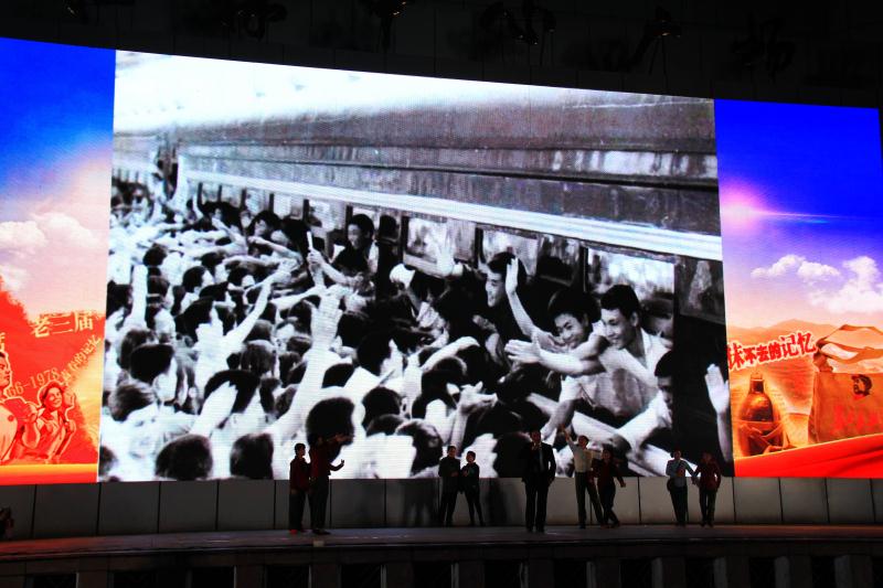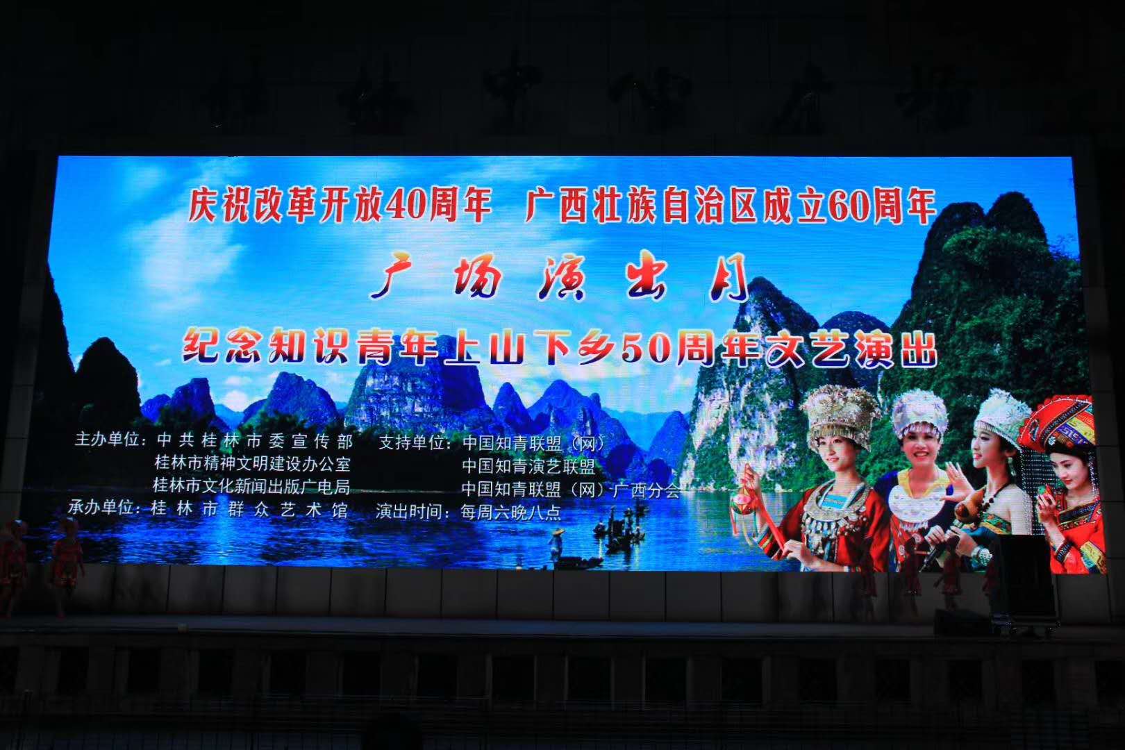为纪念这场牵扯千百万中国家庭,轰轰烈烈的知识青年上山下乡运动,桂林市在中心广场大舞台举办了一场“纪念知识青年上山下乡50周年文艺晚会”。