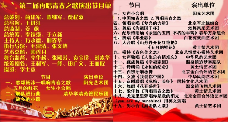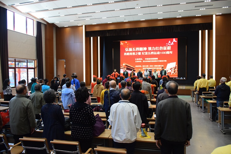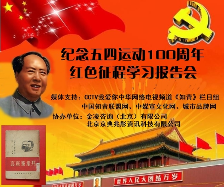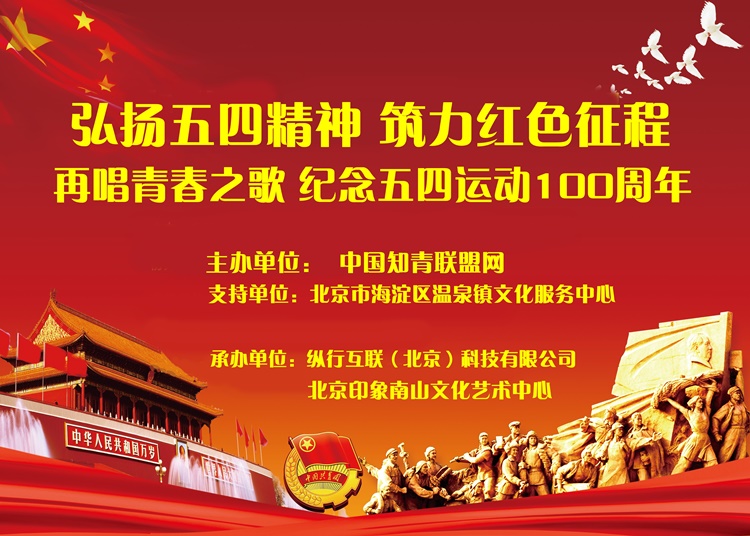 在喜迎建国七十周年之际,由中国知青联盟主办的,北京市海淀区温泉镇文化服务中心支持的,由CCTV我爱你中华网络电视频道《知青》栏目组、中国知青联盟网、中媒宣文化网、城市品牌网媒体支持的,金凌咨询(北京)有限公司、北京京典兆彤资讯科技有限公司协办的,纵行互联(北京)科技有限公司、北京印象南山文化艺术中心承办的“弘扬五四精神 筑力红色征程《再唱青春之歌 纪念五四运动100周年》”的学习报告会,5月5日在北京印象南山文化艺术中心举办。