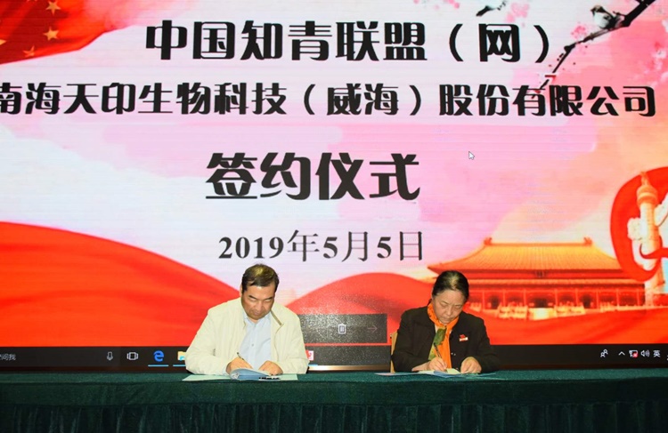 中国知青联盟与南海天印生物科技(威海)股份有限公司签约。