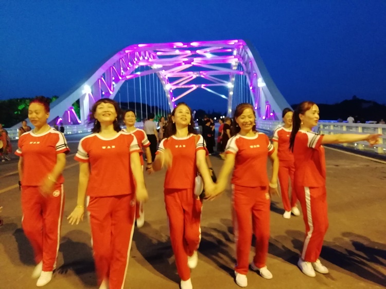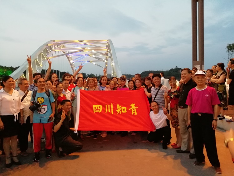 9日晚上参加会议的知青们齐聚自贡彩虹桥头举行盛大的快闪活动。