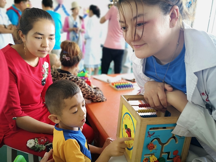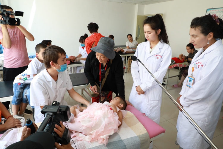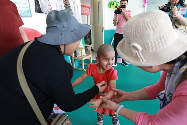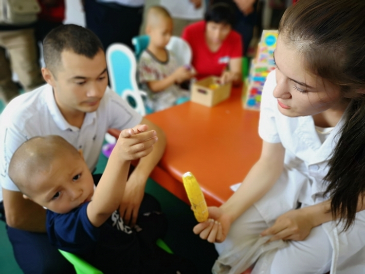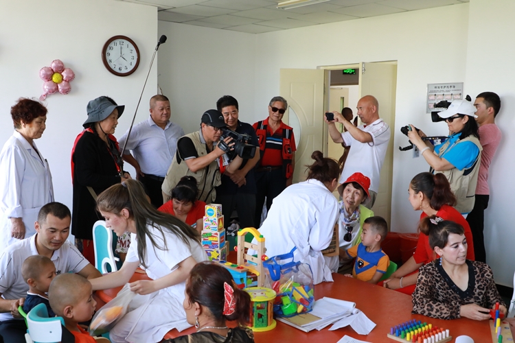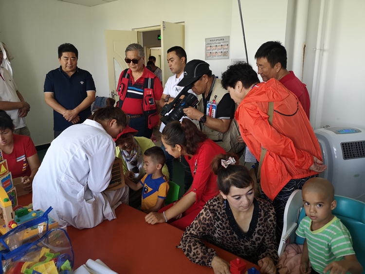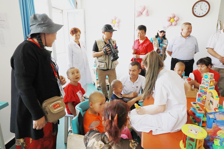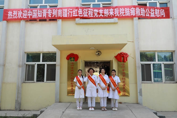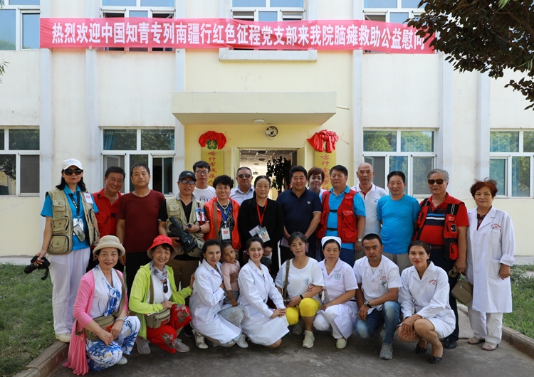 2019年8月3日,中国知青专列南疆行抵达喀什。知青们获悉喀什有所民政部“明天计划“脑瘫救治定点医院——喀什罗克曼金庚脑瘫康复医院,决定前往公益慰问脑瘫儿童。由中国知青联盟理事长、专列临时党支部书记王进江,宝鸡分会袁乃鸣,山西分会王瑾,企业家联盟张广平各捐赠1000元,宝鸡知青董宝才个人捐赠500元慰问了脑瘫儿童。