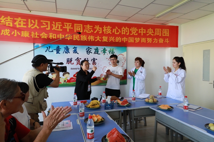 知青们在医院与医务人员及脑瘫病儿进行了互动。CCTV大型系列人文纪录片《辉煌岁月》摄制组全程拍摄了本次公益活动。