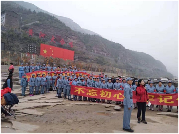 9月 20 日,160 人的兵团战友,在山东省新时代知青文化艺术交流中心红色会旗引领下,大家兴致勃勃地参观了被习近平总书记称之为“有大学问的地方”——陕西省延川县文安驿镇梁家河村知青点,内心受到极大的教育和鼓舞。 在宝塔山下,在黄河壶口瀑布下,大家一次又一次地高歌,