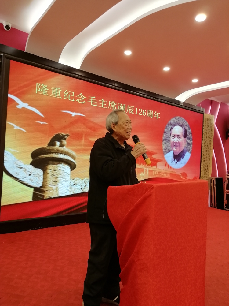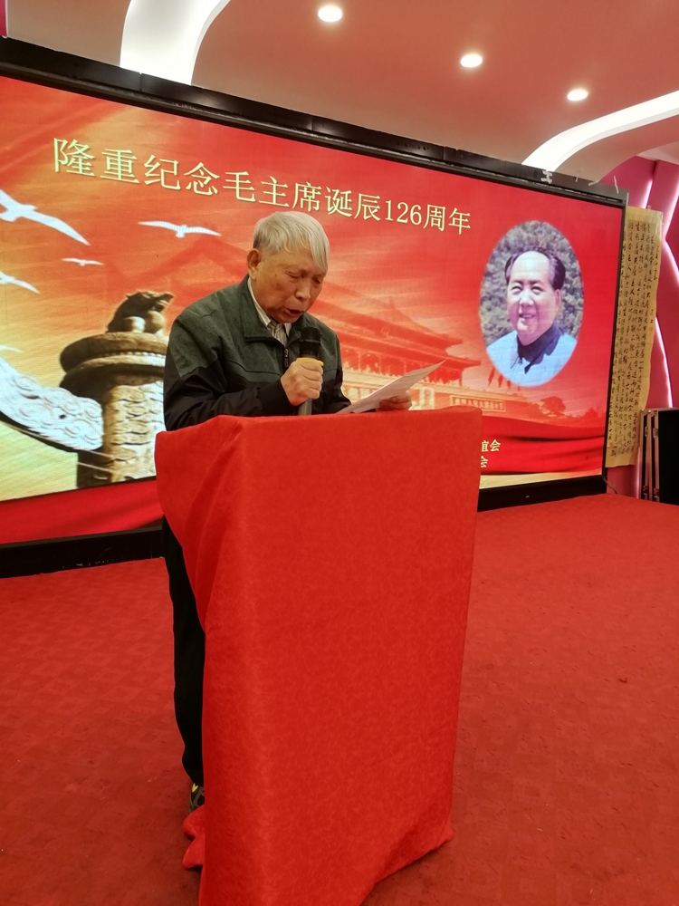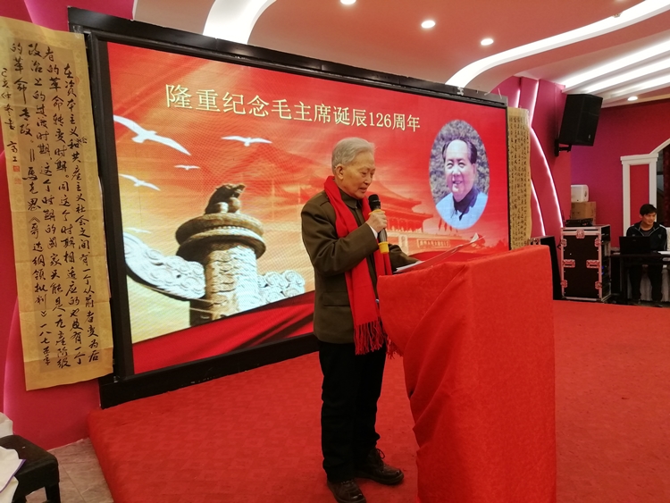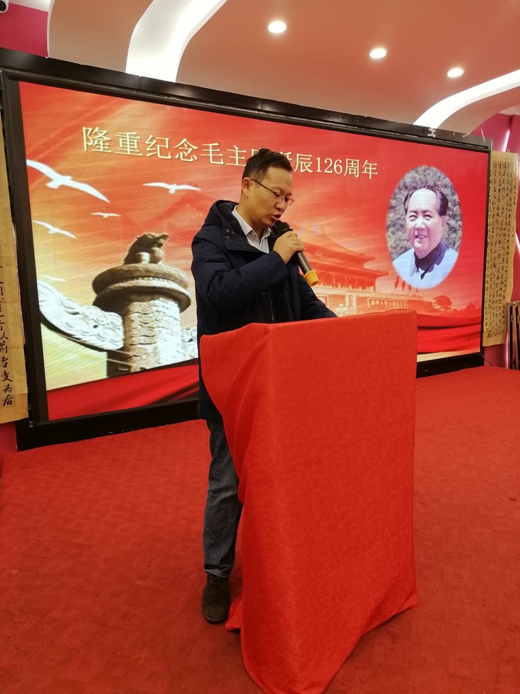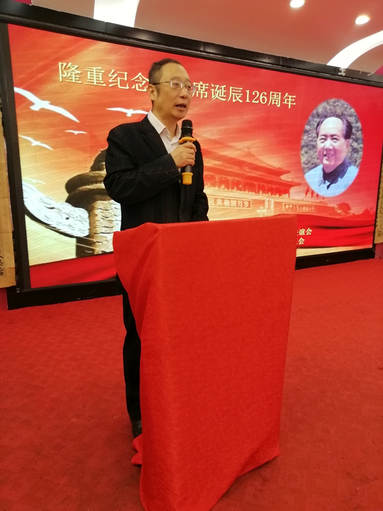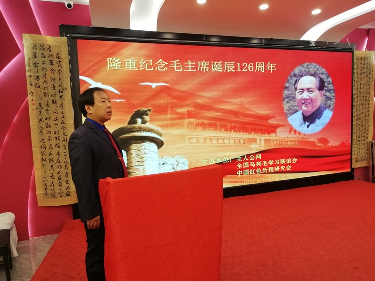 大会由主人公网站站长顾金钟同志主持,他说:习近平总书记说:毛泽东同志是伟大的马克思主义者,伟大的无产阶级革命家、战略家、理论家,是马克思主义中国化的伟大开拓者,是近代以来中国伟大的爱国者和民族英雄,是党的第一代中央领导集体的核心,是领导中国人民彻底改变自己命运和国家面貌的一代伟人。