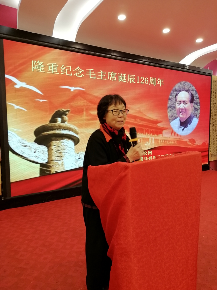 延安儿女联谊会副会长兼秘书长、八一学校同学会会长李莉莉在发言中详细表现了毛泽东时代取得的进步,展现了新中国带给人民的幸福感。