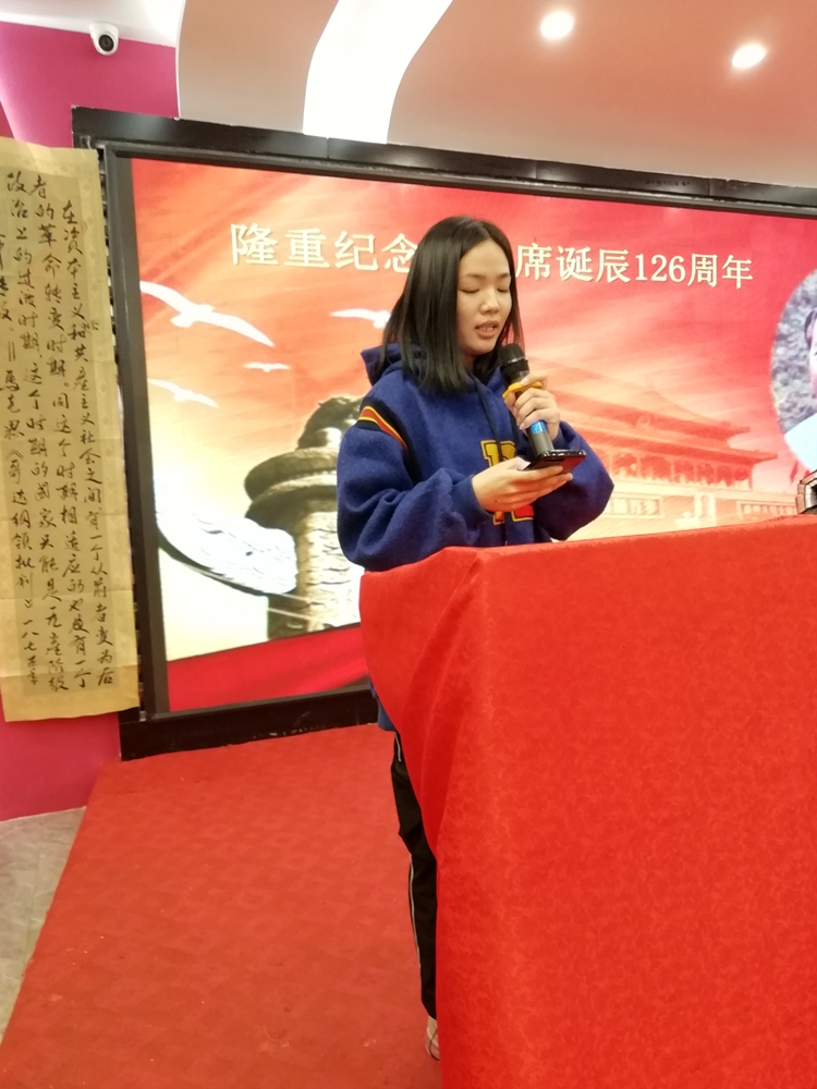毛主席领导中国共产党人和中国人民用热血和生命谱写了波澜壮阔的革命史、艰苦卓绝的斗争史、可歌可泣的英雄史。革命先烈们作为中国共产党人的优秀代表,用血与火铸就了党的历史,书写了中华民族历史长河中最辉煌灿烂的重要篇章。为缅怀领袖丰功伟绩,重温伟大斗争历程,深刻认识高举毛泽东思想伟大旗帜的重要意义,牢记初心使命的本质和内涵,让红色基因在传统一代得到巩固,在年轻一代得到传承,今天大家在这里聚集。让我们永远缅怀伟大领袖毛泽东主席等老一辈无产阶级革命家所建立的丰功伟绩,不忘初心,牢记使命,在习近平新时代中国特色社会主义思想指引下,同心共筑中国梦,为实现中华民族的伟大复兴而奋斗!