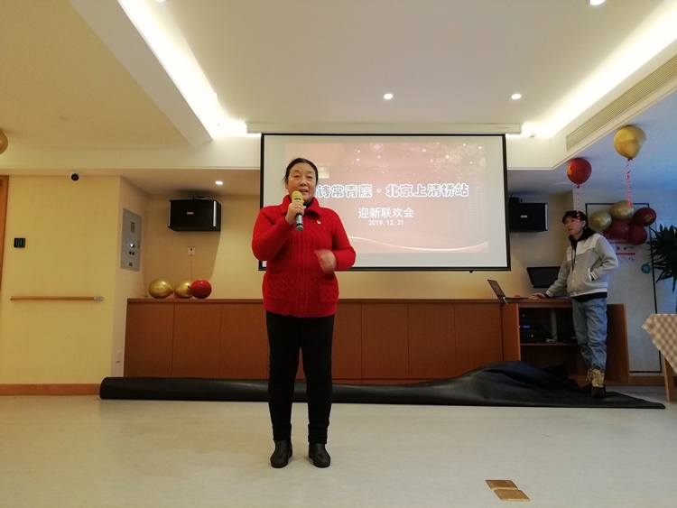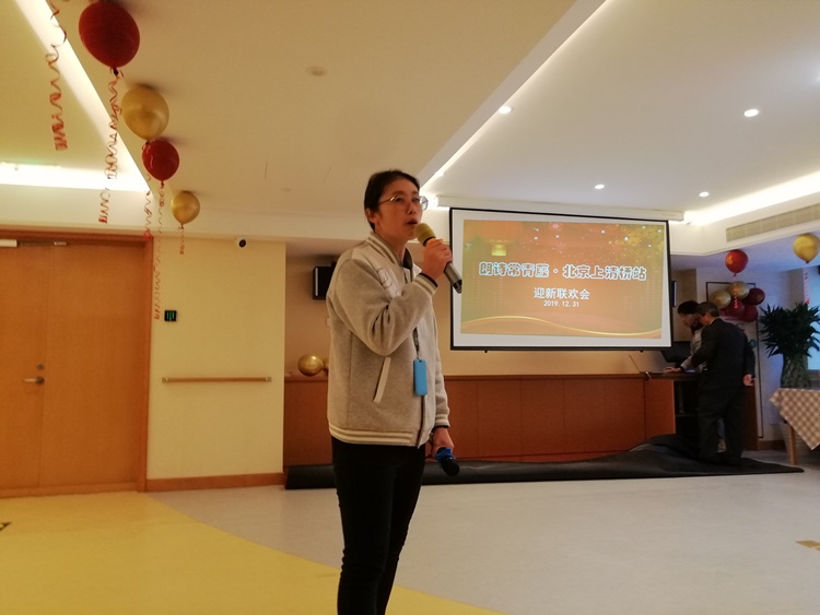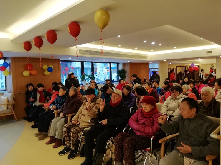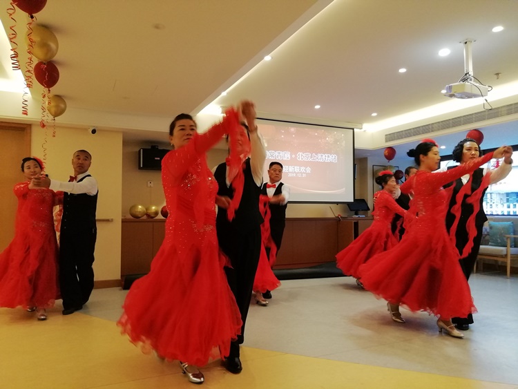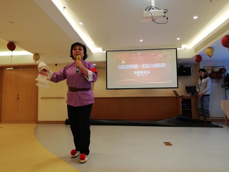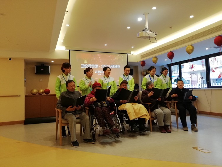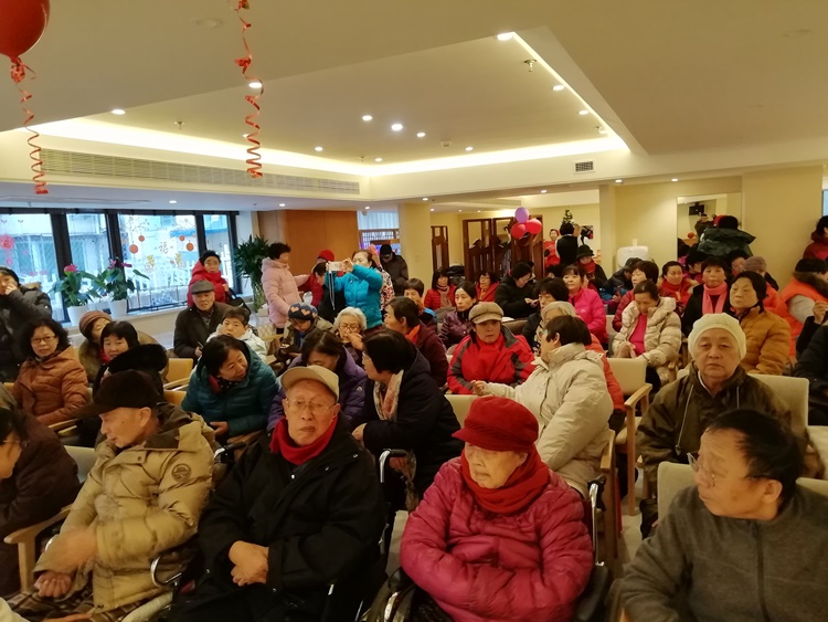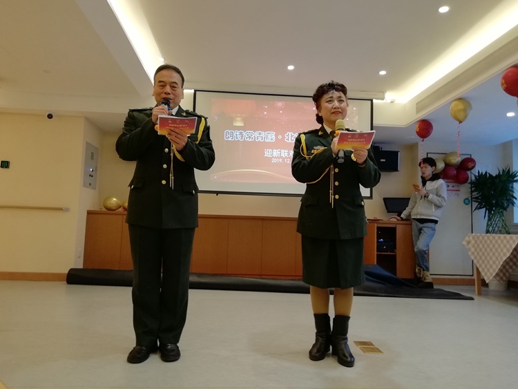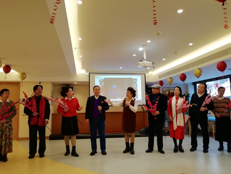 2019年的最后一天朗诗常青藤养老中心举行迎新春联欢会,红色征程联合党支部书记王进江携红色征程艺术团前往慰问老人。