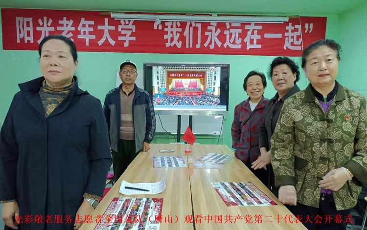 光彩敬老服务志愿者全国总队(河北唐山)收看中国共产党第二十次代表大会开幕式。