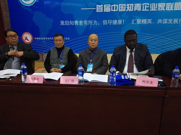 中国老年学和老年医学学会理事北京医科大学副校长李东方教授、中国老年学和老年医学学会养生科学专业委员会副主任朱高山、中国知青联盟常务副理事长丁晓华在主席台就坐。