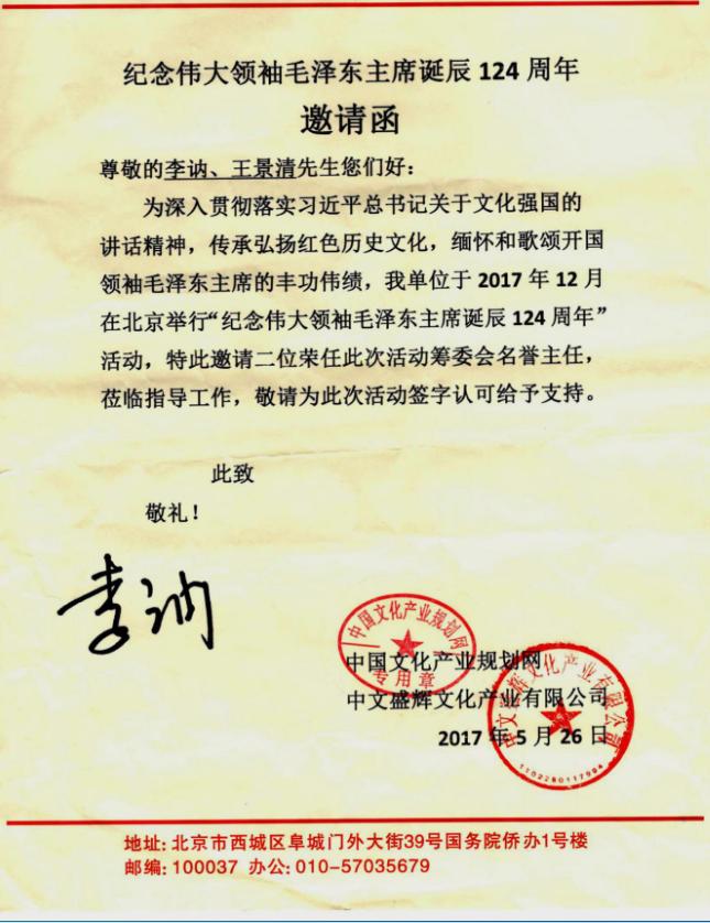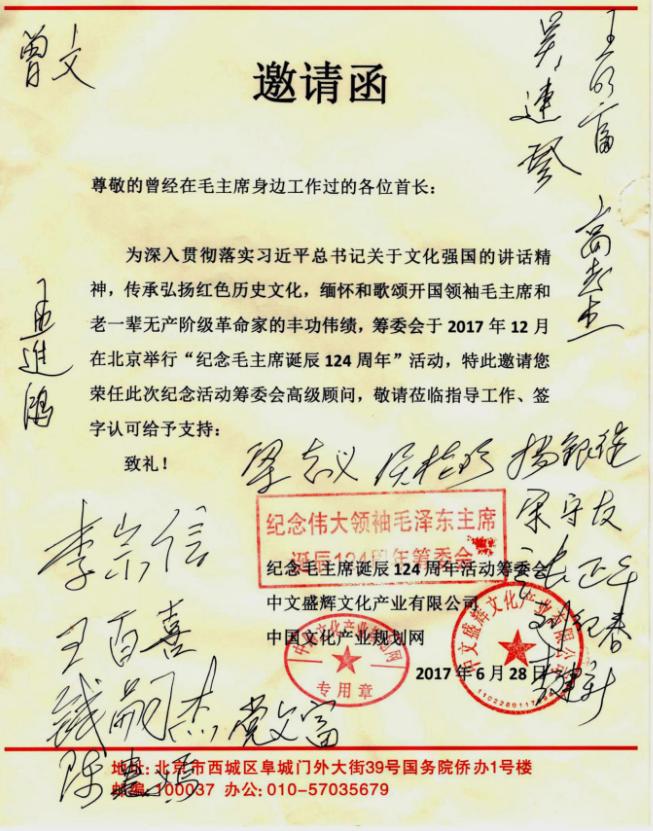 欢迎企业家支持纪念伟大领袖毛主席诞辰124周年活动,有意愿合作和提供赞助者请联系筹委会主任董文增(手机:18631606999.13269399111座机:010-57135569)