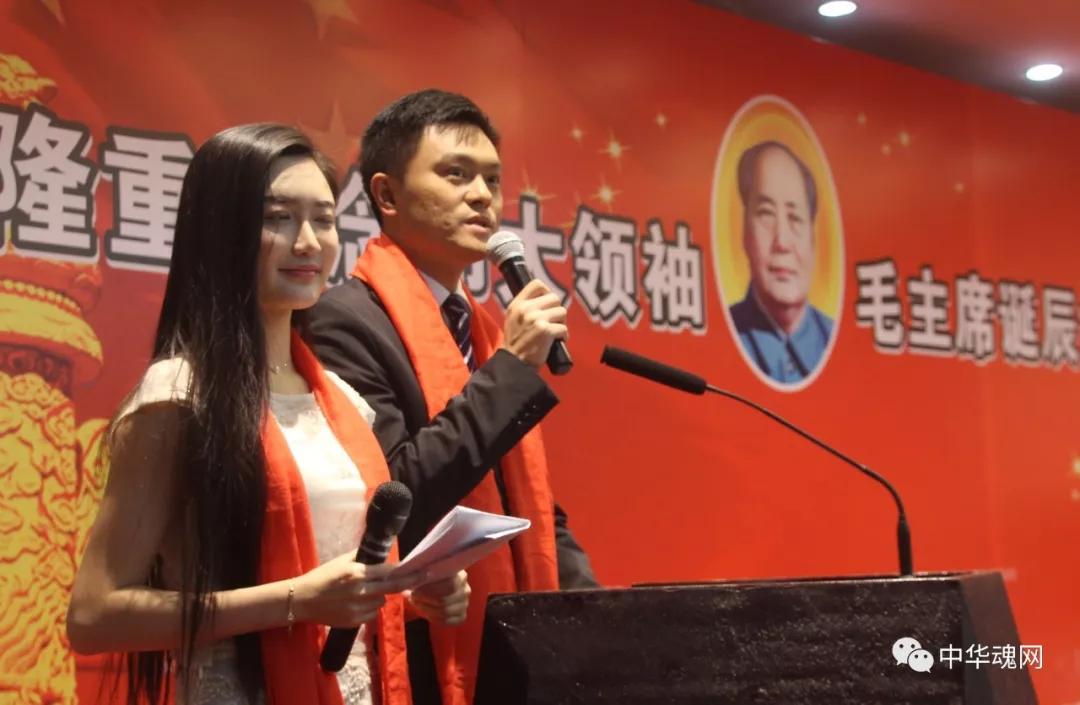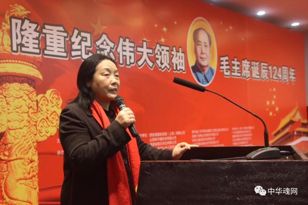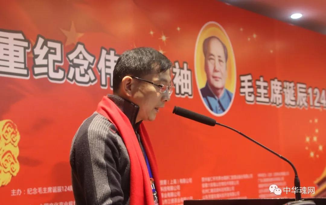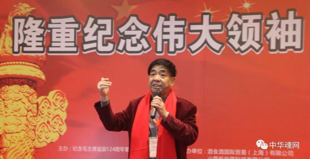 会议伊始,全体与会者在大合影时,在组委会副主任赵地的热情指挥下与会者反复高唱《东方红》将活动的高潮掀起;接着,由主持人王昊辰和杜美莹联袂介绍来宾后,由纪念毛主席诞辰124周年筹委会董文增主任致《开幕辞》,再由毛主席身边工作人员代表王明富政委做了“关于贯彻落实十九大精神,缅怀毛主席”的主旨报告,王政委用一首“中华振兴梦,百年誓圆成。走我中国路,富我华夏民。磨我中华剑,强我民族身。展我文明彩,耀我礼仪门。九州同一梦,全民共一心。举国齐奋进,实干梦必成。云帆济沧海,劈波斩浪行。中国走世界,和睦结亲邻。世界向中国,繁荣共和平。人类更美好,环宇启新程。展望千秋岁,丰碑鉴古今。”他深情的结束了主旨报告。然后,由柬埔寨王国内务部副国务卿、驻华原大使岳必成先生用流利的汉语讲述了毛主席的丰功伟绩,令全场掌声雷动、多次;接着由原驻阿尔巴尼亚全权大使、毛主席的阿语翻译范承祚先生讲述了他与主席的往事,范老用“年年似水匆匆逝,局势如棋步步移,国运终呈今盛世,不忘领袖奠根基。”来彰显他感恩毛主席的情怀!最后,福建省南平市人民政府秘书长董文忠代表福建隆合茶业&三贤茶业、青海省治理荒漠基金会副理事长张慧明代表理事长、中国知青联盟理事长王进江代表百万知青盟友、刘胡兰的胞弟刘继烈讲述了毛主席为姐姐题词的故事,酒食酒国际贸易(上海)有限公司董事长董德、湖南毛体书法协会会长赵正红等嘉宾先后结合自己的角度和情感,一同讴歌了毛主席的丰功伟绩!