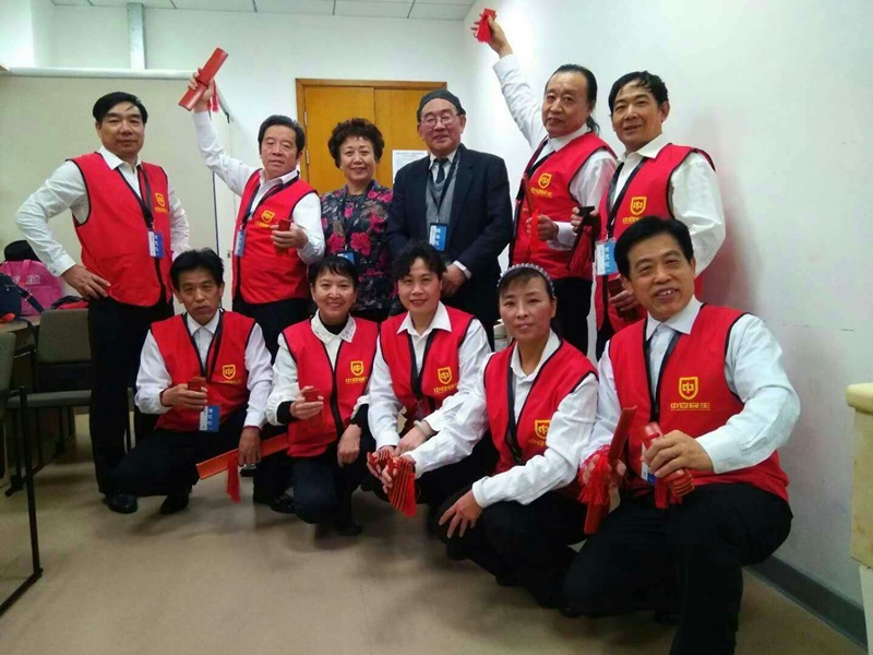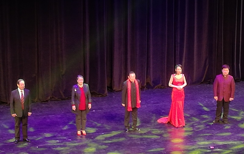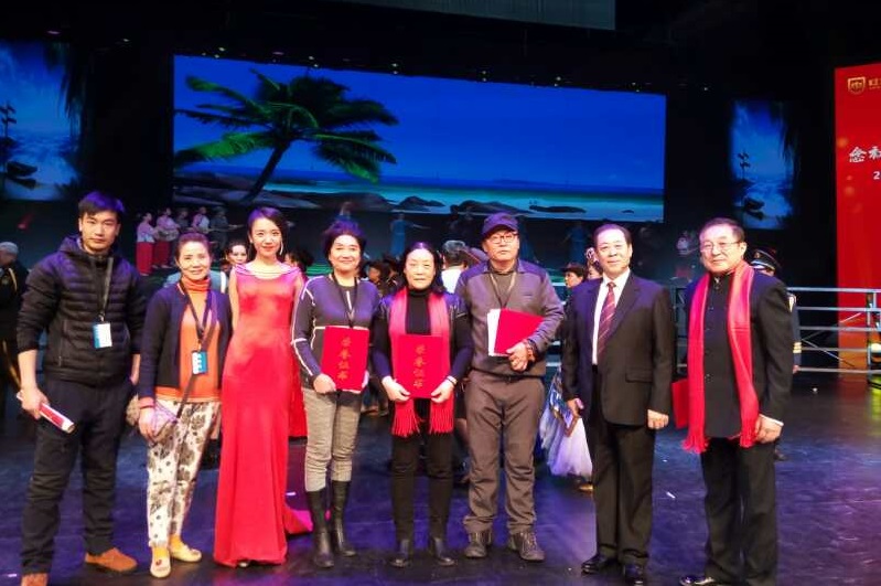 演出前嘉宾孟凡贵、李然、许琳与王进江、邢军在一起合影。