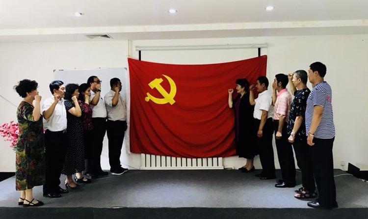 哈尔滨基地主任王怀信率领知青党员在党旗下重温入党誓词。