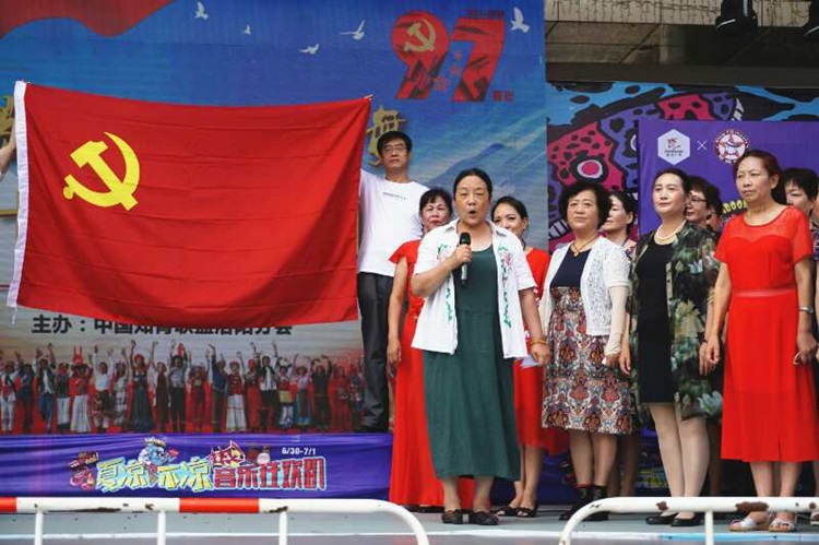 洛阳分会组织大型歌舞庆祝党的生日,知青党员们重温入党誓词。