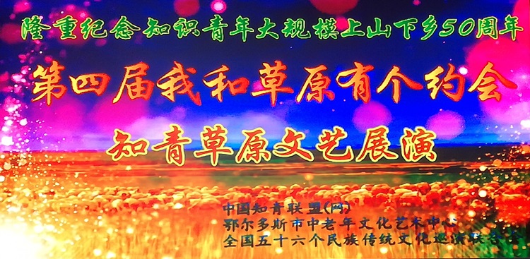 2018年8月8日由中国知青联盟、鄂尔多斯市中老年文化艺术中心及全国五十六个民族传统文化邀演联合会主办的第四届我和草原有个约会知青草原文艺展演在鄂尔多斯举办。
