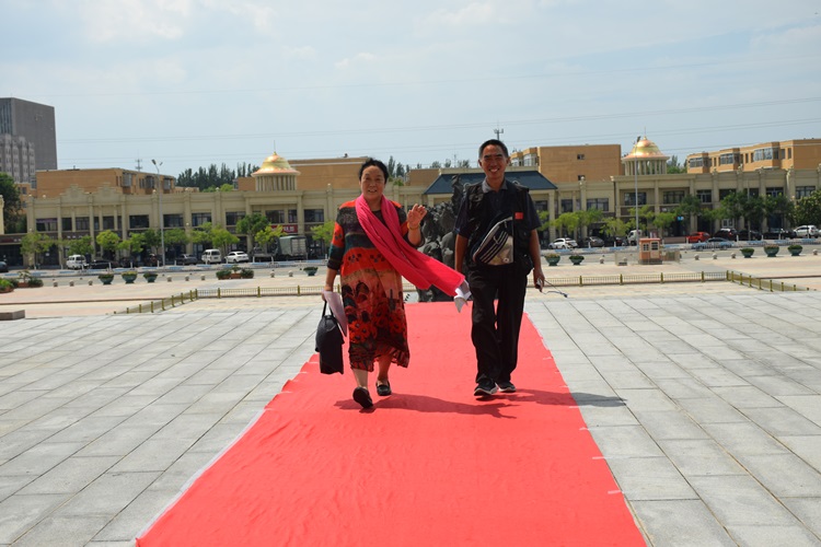 中国知青联盟理事长王进江,秘书长姜飙走红毯。